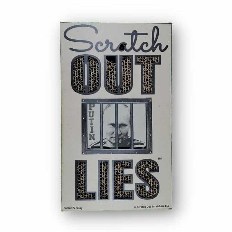 Double wide, double-sided scratcher includes Putin and Trump jail inserts. Snap up more bad guys with our Jan 6-pack. Insurrectionists include Q, Stone, Giuliani, Flynn, Bannon, and Powell (6-pack sold separately).